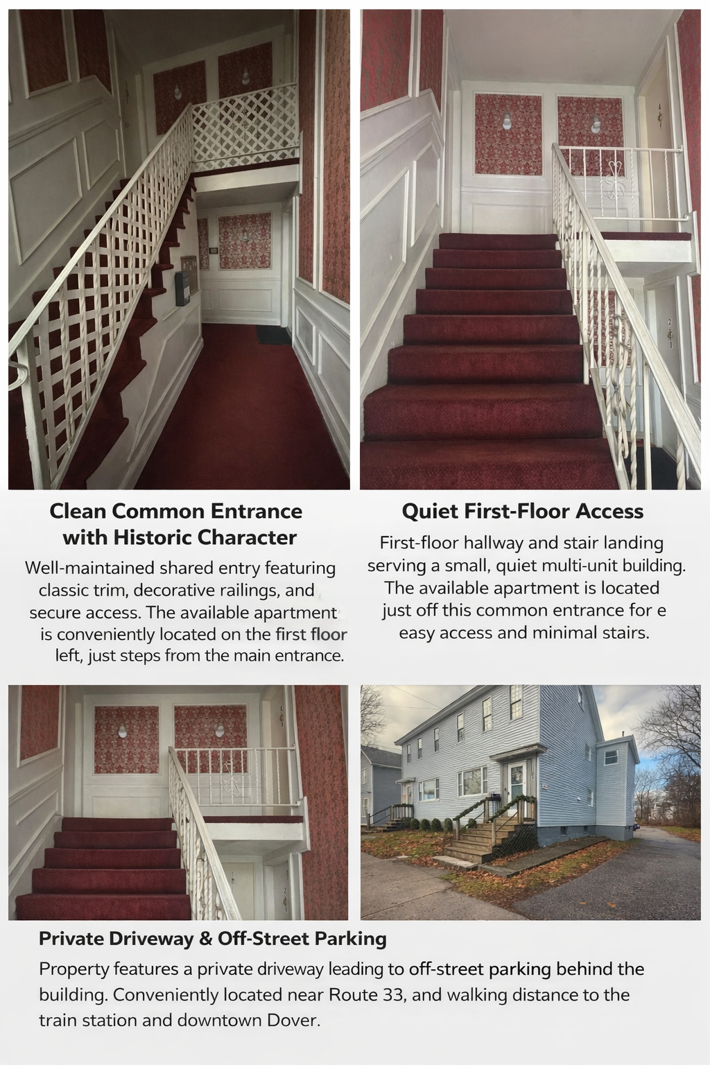 Beautifully updated first-floor 2-bedroom or bonus room located on Coast Bus Route 33 in Dover. The additional room is ideal for a home office, guest space, or optional second bedroom if needed, offering flexible living without the size of a traditional two-bedroom. This unit is currently being upgraded with new luxury vinyl plank flooring and bathroom improvements, creating a clean, modern feel throughout. Features include in-unit washer and dryer, bright comfortable layout, and easy first-floor access in a quiet 4-unit building. Conveniently located on Route 33, walking distance to the Dover train station, and just minutes to downtown Dover, UNH, Portsmouth, and Route 16.